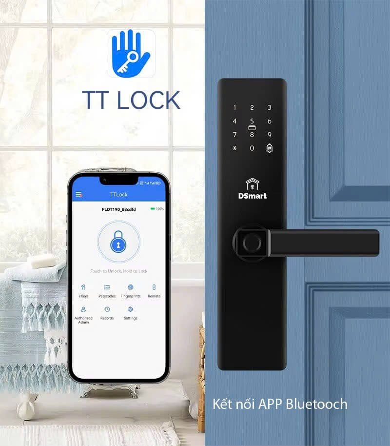 Vân tay – Mật mã – Thẻ từ – Chìa cơ – App điện thoại - 📱 Quản lý qua app TTLock (Bluetooth):