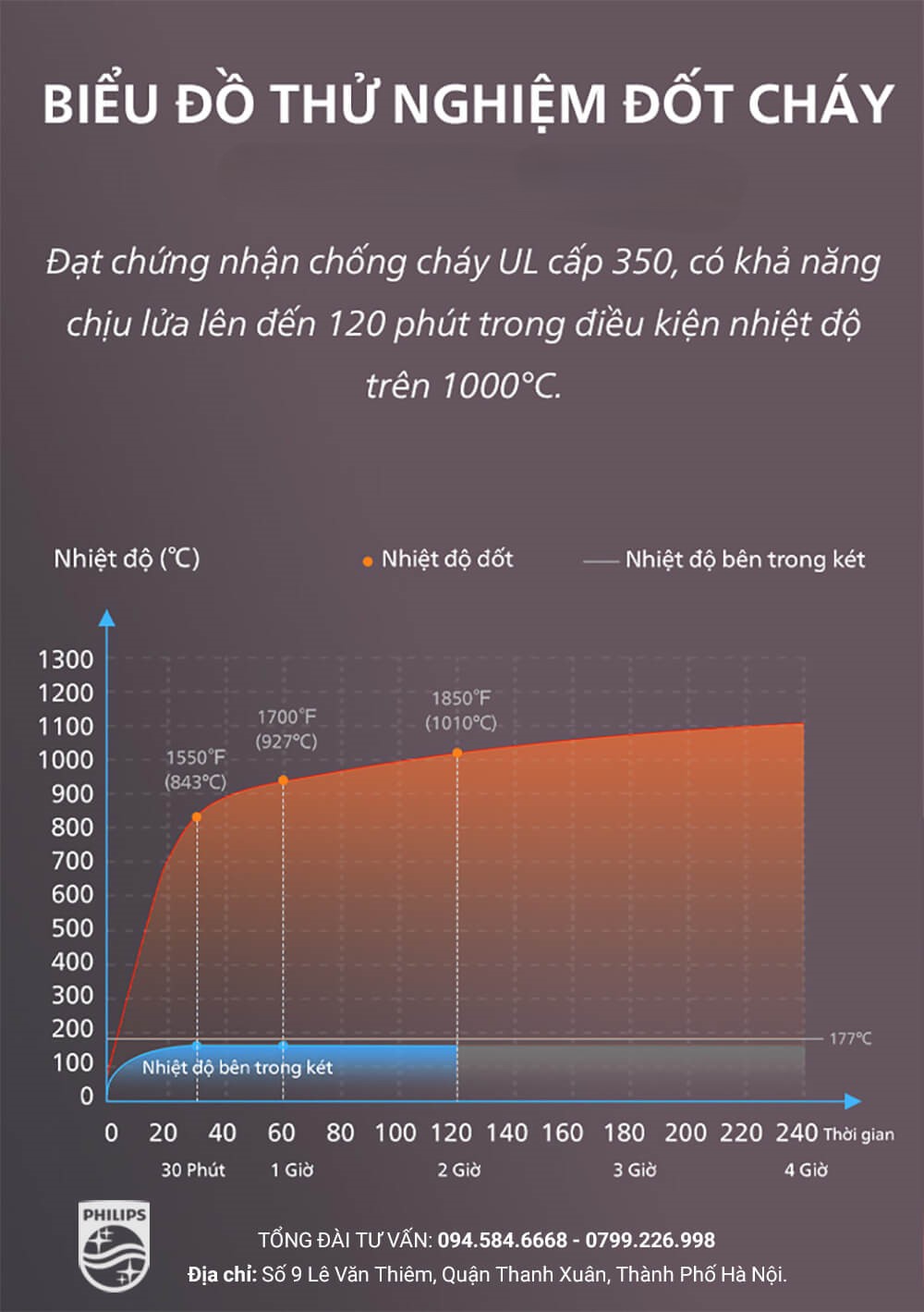 3.1 Khả năng chống cháy an toàn, chịu được 1000 độ C trong vòng 120 phút