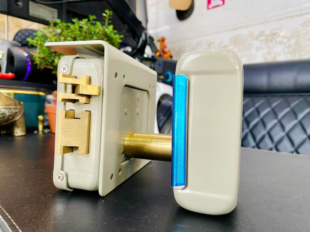 Lưỡi gà khóa thiết kế thông minh với lẫy đóng cửa êm, hạn chế tiếng ồn khi đóng cửa.