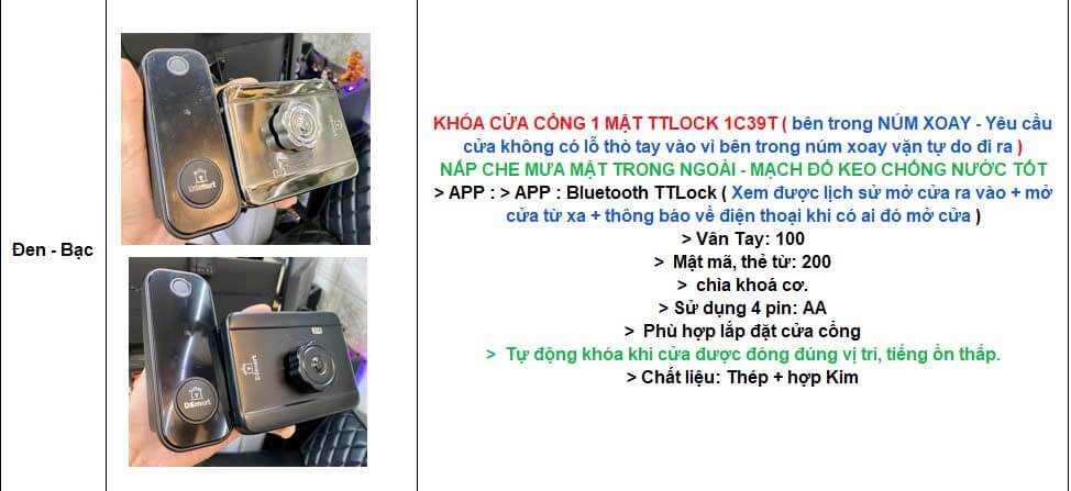 - Khóa Cửa Cổng Khóa Cửa Cổng DSmart 1C39T-NX CHỐNG NƯỚC tích 5 phương thức mở khóa trên cùng 1 thiết bị, tức có thể mở bằng nhiều thương thức khác nhau tùy vào nhu cầu sử dụng. Bạn có thể chọn 1 trong 5 cách sau đây: vân tay, mật mã, thẻ từ, chìa cơ, App Bluetooth, tất cả các phương thức mở đều bảo mật và mang tính chất riêng.