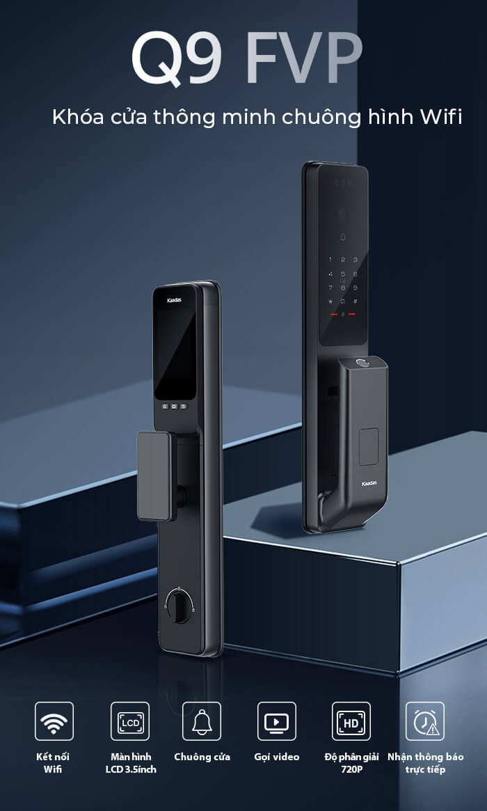 - Khóa Cửa Điện Tử Kaadas Q9-FVP tất cả giải pháp thông minh chỉ trong một sản phẩm, khóa cửa hội tụ đủ tất cả những gì bạn mong muốn. Nâng cấp nhận diện lên tầm cao mới, Q9-FVP sử dụng công nghệ tĩnh mạch ngón tay, là công nghệ bảo mật mới nhất, tăng thêm độ an toàn cho ngôi nhà.
