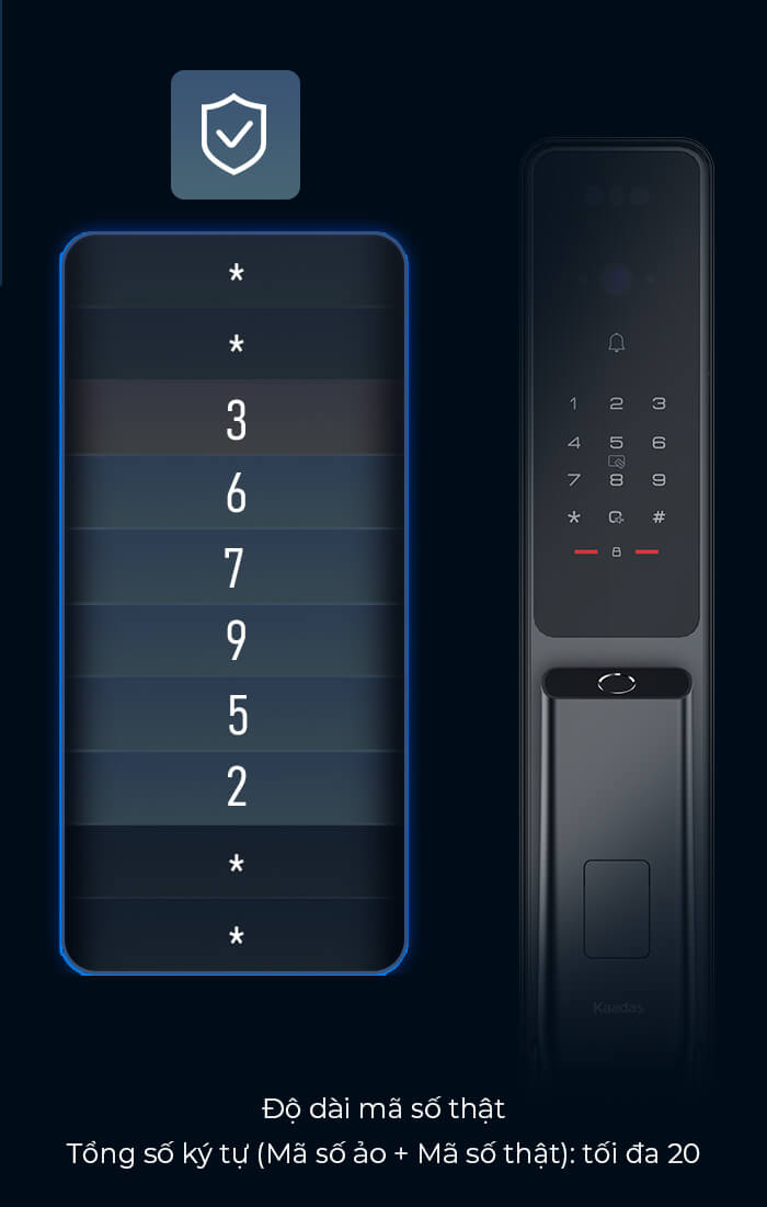 - Chức năng mã số ảo: Cho phép nhập ngẫu nhiên số trước và sau mã số thật để ngăn chặn kẻ gian nhìn lén từ bên ngoài.