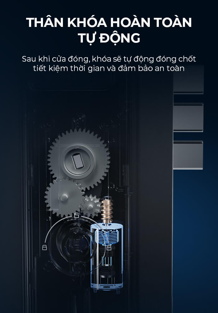 - Thân khóa tự động: Tự động đóng chốt khi đóng cửa. Xua tan nỗi lo quên khoá cửa khi ra ngoài.