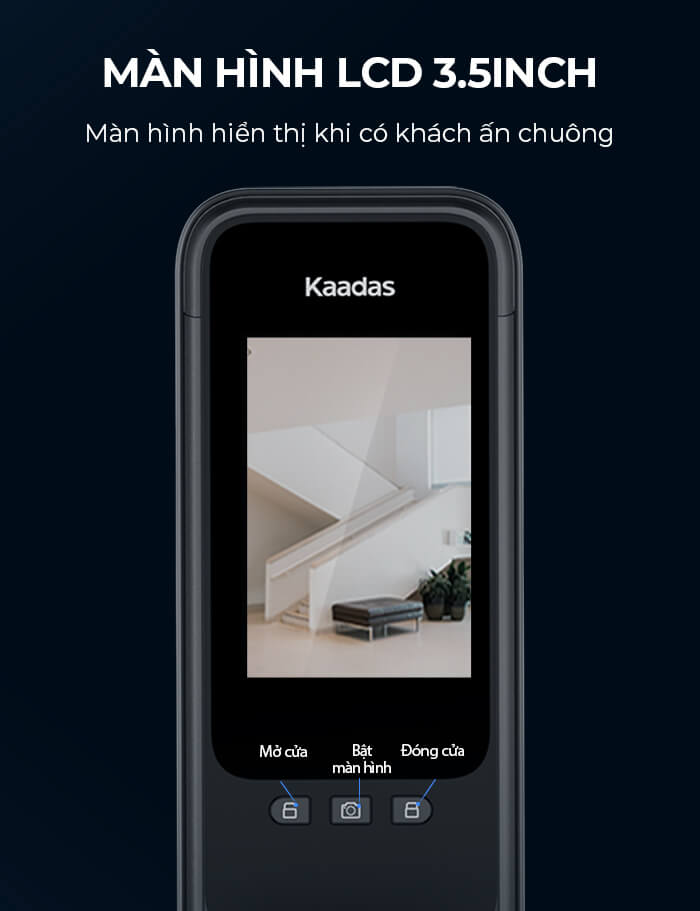 Kaadas Q9-FVP được trang bị một camera bên ngoài và một màn hình LCD 3.5 inches bên trong, mang lại hình ảnh cực kỳ rõ nét và màu sắc đẹp mắt. Ngay khi có người bấm chuông, hình ảnh sẽ ngay lập tức được truyền tải vào màn hình, cho phép bạn kiểm soát người lạ đến nhà một cách dễ dàng. Bạn cũng có thể kiểm tra tình hình trước cửa bất cứ lúc nào.