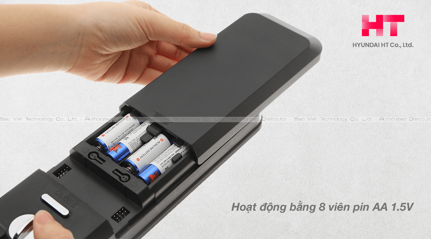 Khoá điện tử HDL-5900SK sử dụng nguồn điện 12V gồm 8 viên pin alkaline, loại AA 1.5V.