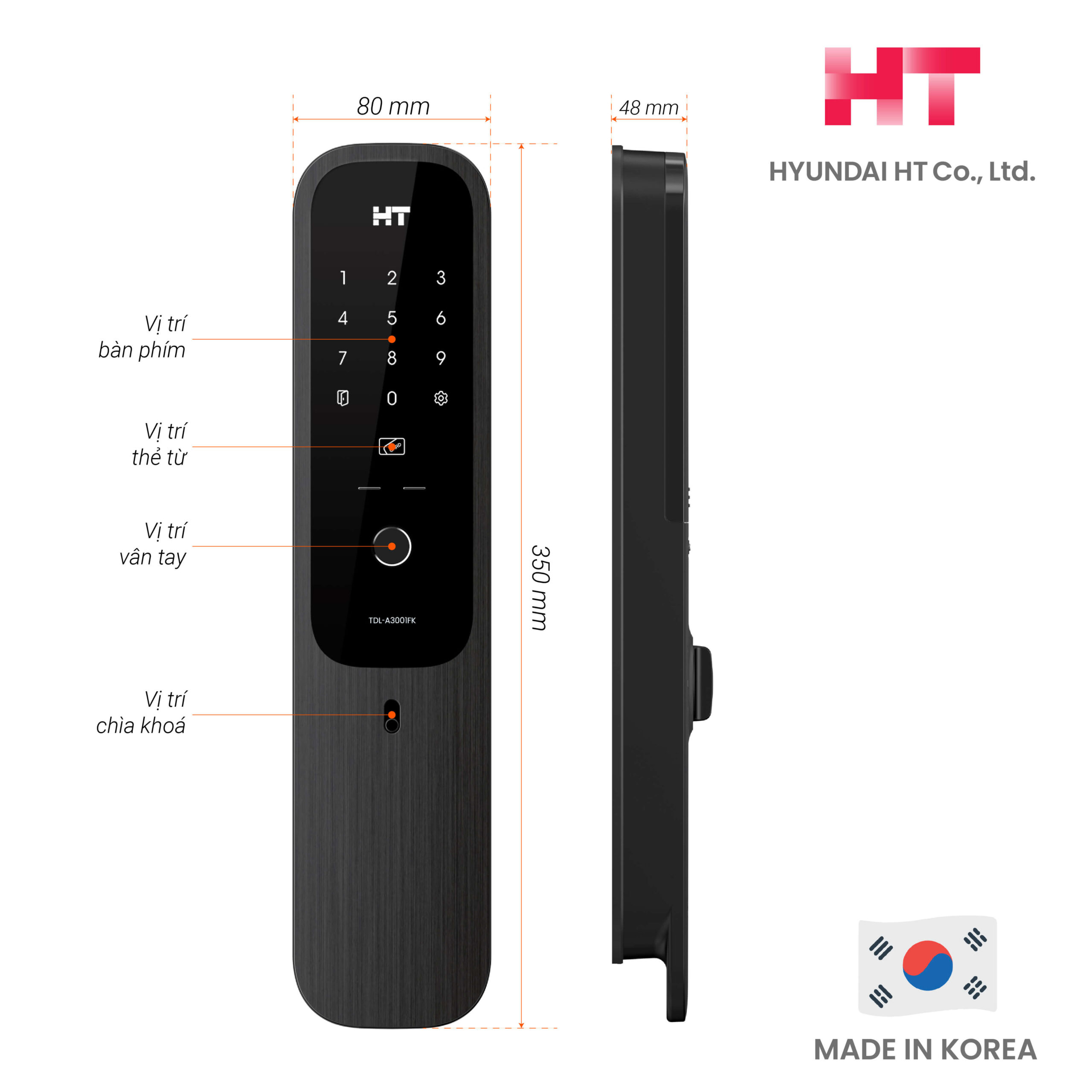 Khóa điện tử Hyundai HT TDL-A3001FK – Tự động khóa 0 giây, an toàn chuẩn Hàn Quốc