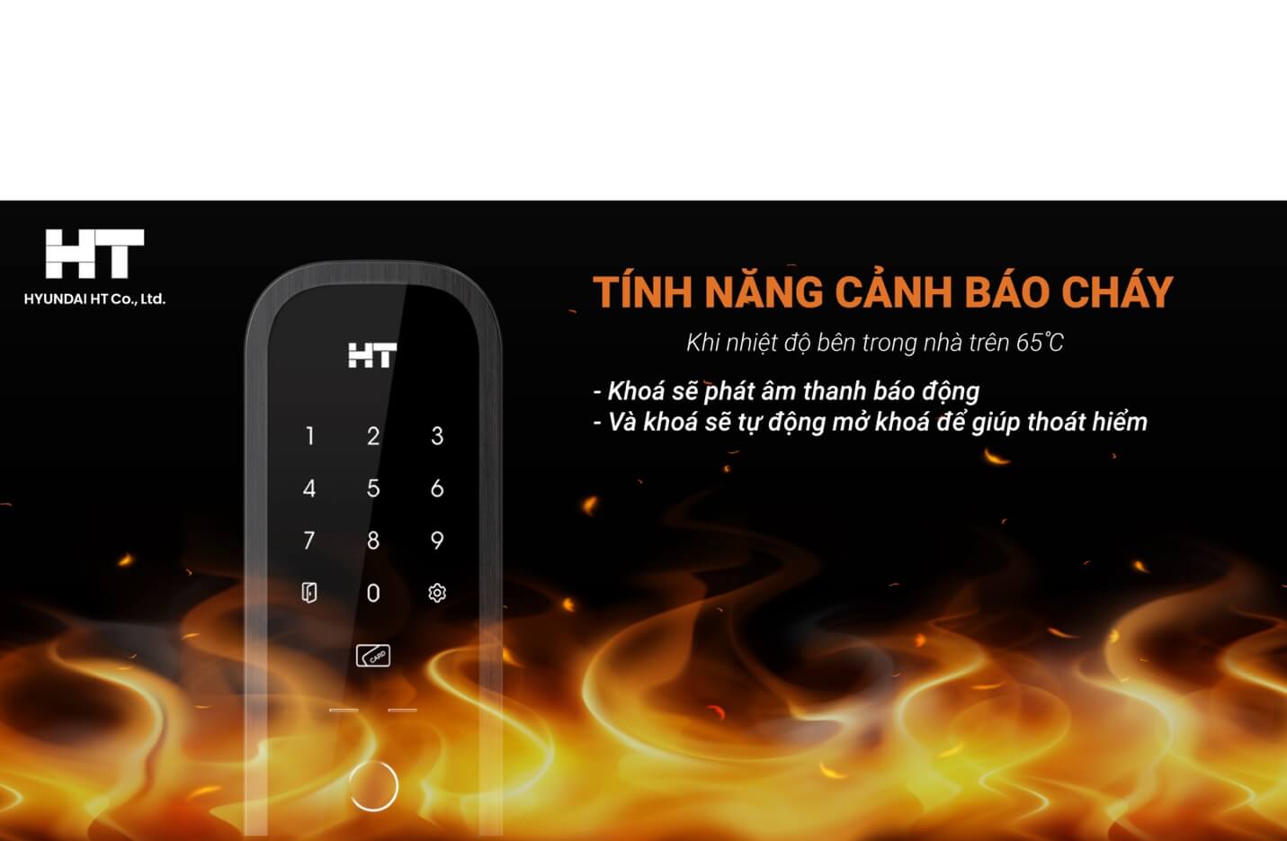 - Báo cháy tự động: Khi phát hiện nhiệt độ phòng vượt ngưỡng 65°C, khóa sẽ vừa phát âm báo vừa tự động mở cửa để hỗ trợ người bên trong thoát hiểm.