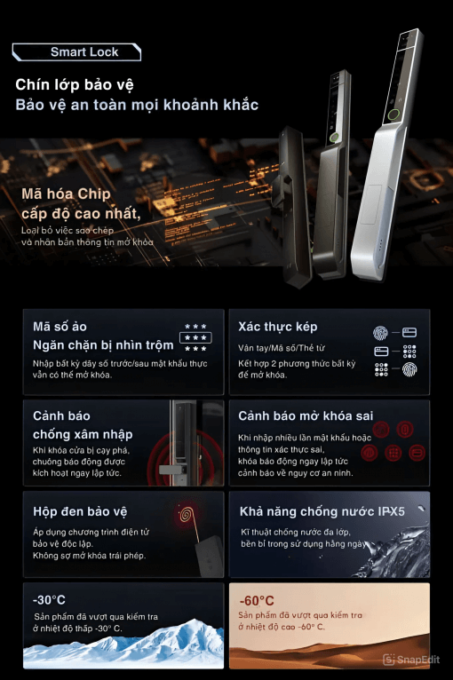 - Chống phá khóa: Trang bị các cảnh báo chống xâm nhập hiện đại.