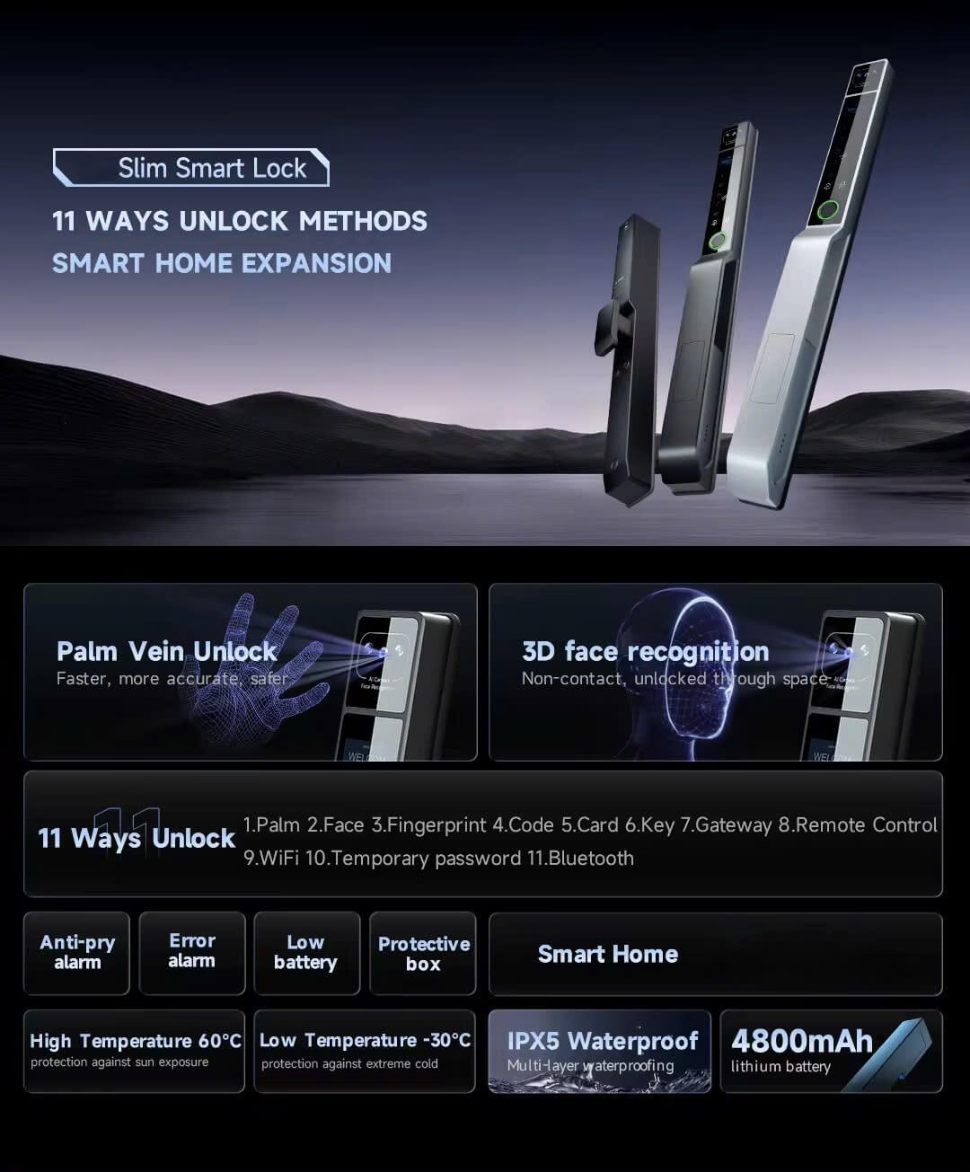 - Nhận diện lòng bàn tay (Palm Vein Unlock) – nhanh chóng, an toàn.