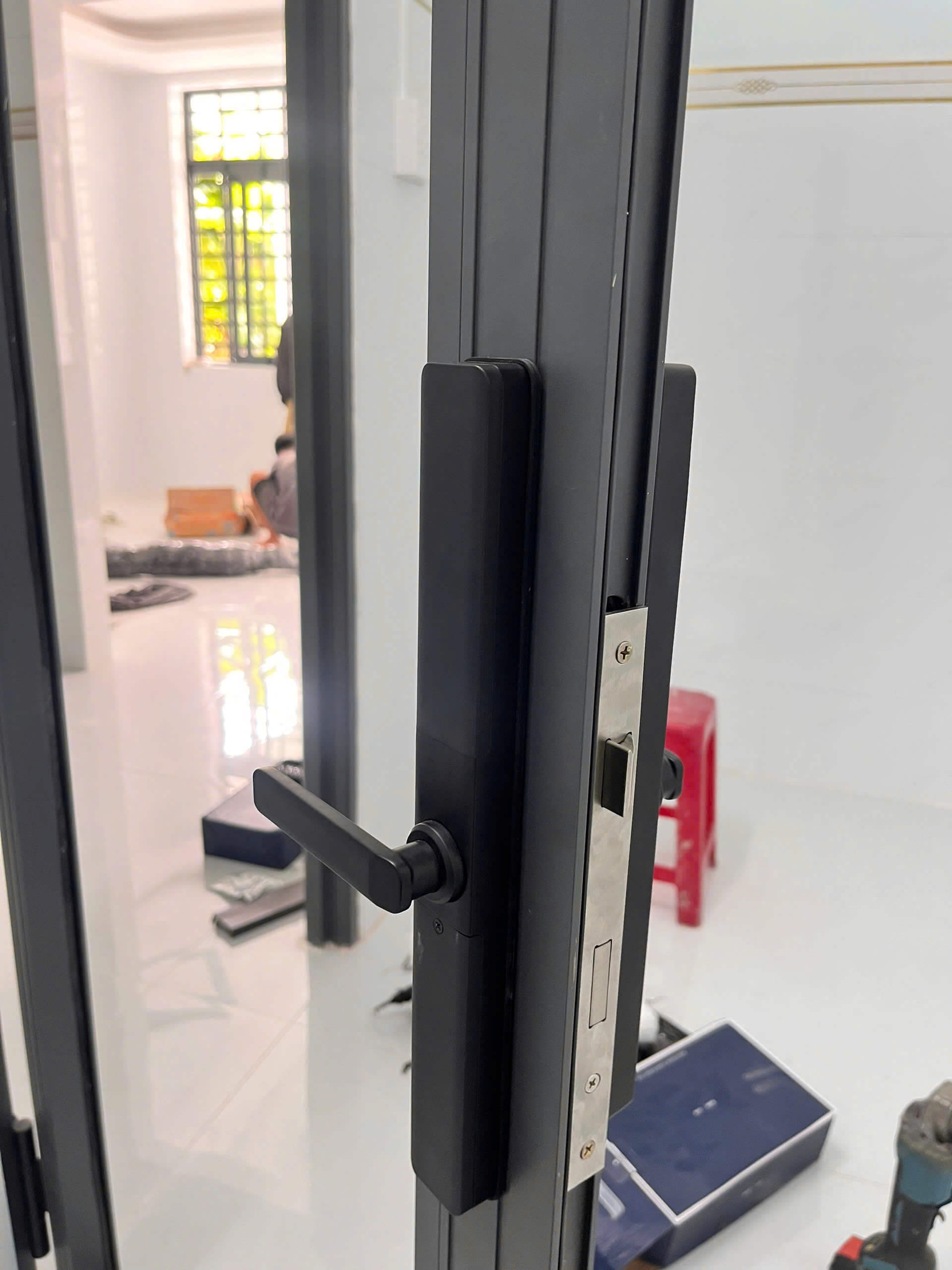 Khóa có thân siêu mỏng 3.8cm, lắp vừa khít thân cửa nhôm 3085 mà không cần phay đố trong – thẩm mỹ cao, dễ thi công.