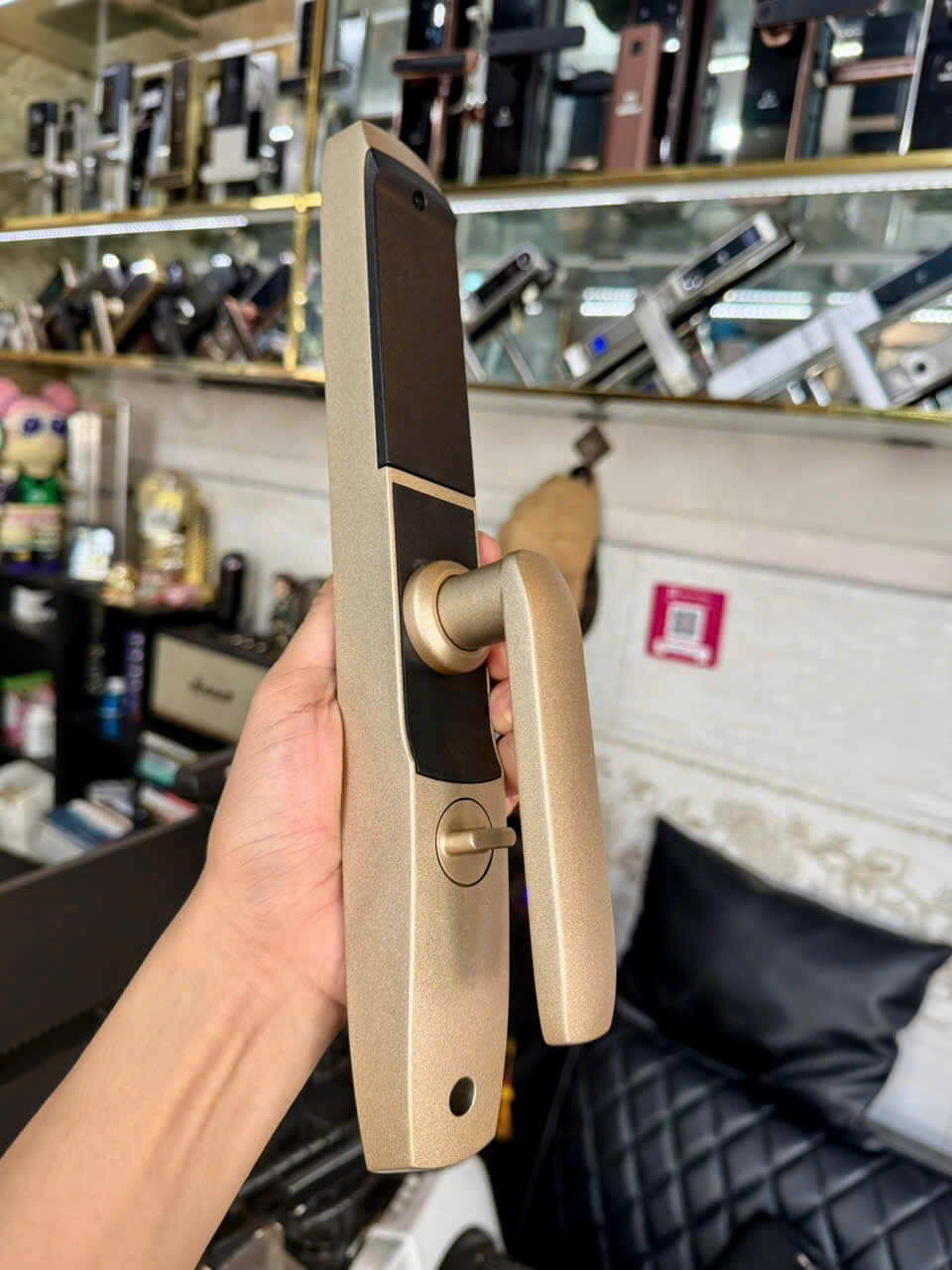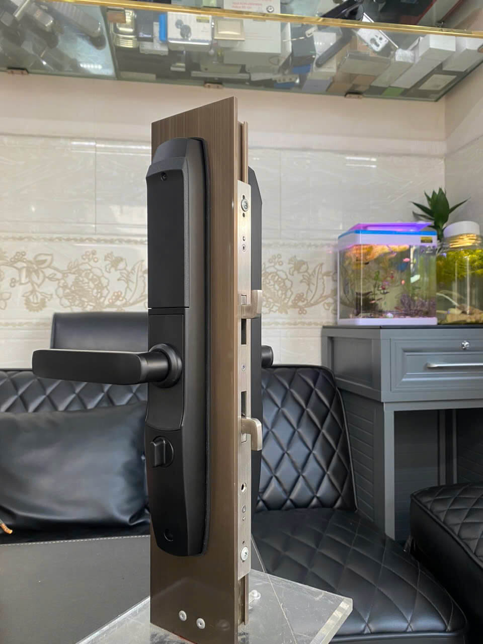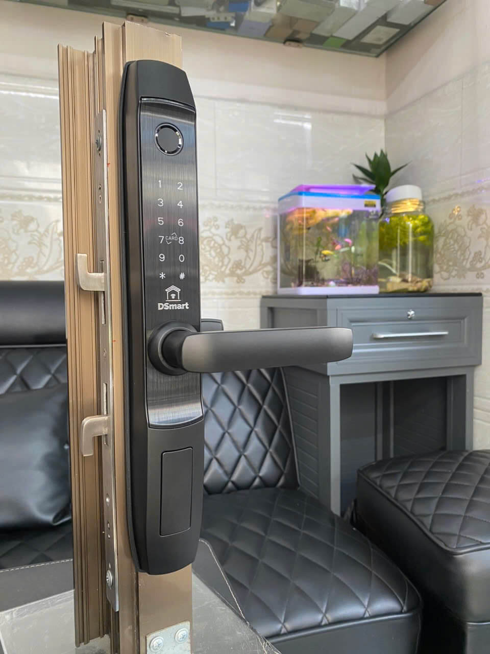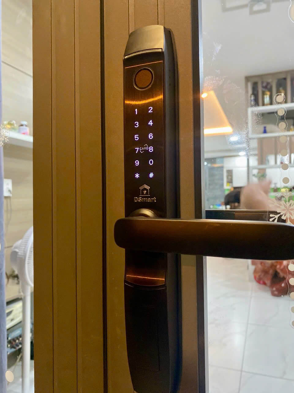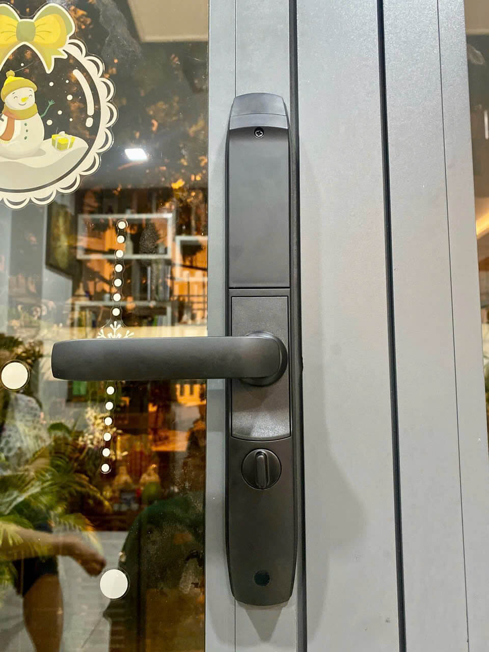 Hình ảnh lắp đặt thực tế khóa điện tử thông minh cửa nhôm Xingfa DSmart N39T